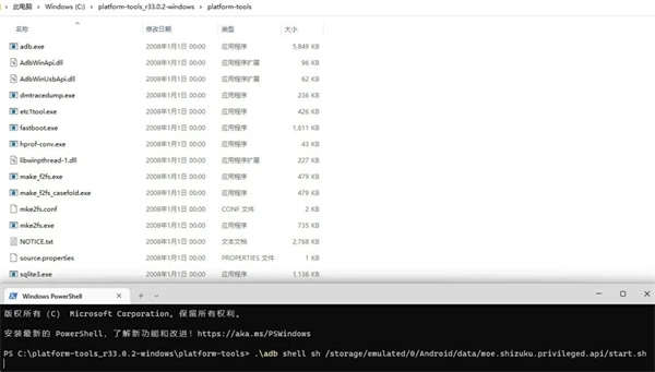 .\adbshellsh/storage/emulated/0/Android/data/moe.shizuku.privileged.api/start.sh