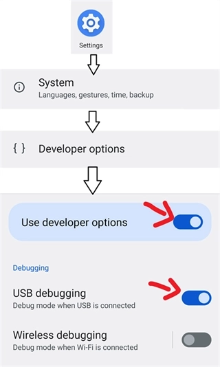 在网络上搜索如何为您的机型启用“开发者选项”