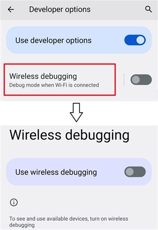 如果无法启动,尝试禁用并启用无线调试。