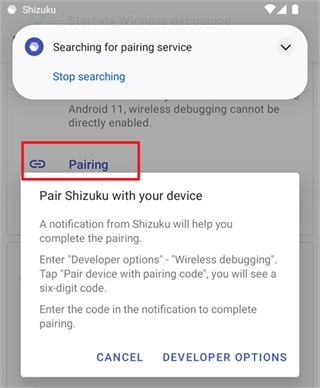 在Shizuku的通知中填入配对码