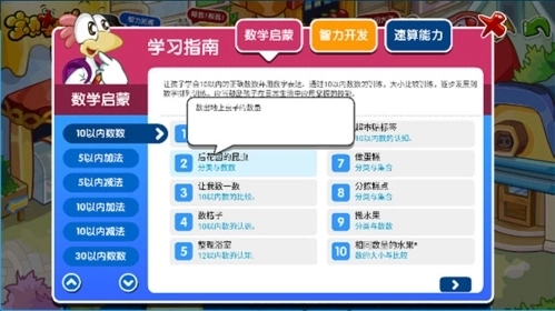 3、涵盖数学启蒙、智力开发、速算能力三大板块,包含600个学习游戏与6000项练习。