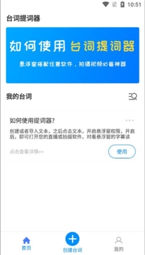 1、首先我们打开可以看到正下方可以点击创建台词;
